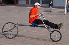 Der Antrieb erfolgt nicht wie beim Fahrrad durch eine Kreis-Bewegung, sondern auf einer dem Laufen nachempfundenen elliptischen Bahnkurve. ( Selbst bei Gegenwind und großer Angriffsfläche ist in der stehenden Position die Kraftübertragung so effizient dass ein schnelles Vorankommen möglich ist.)